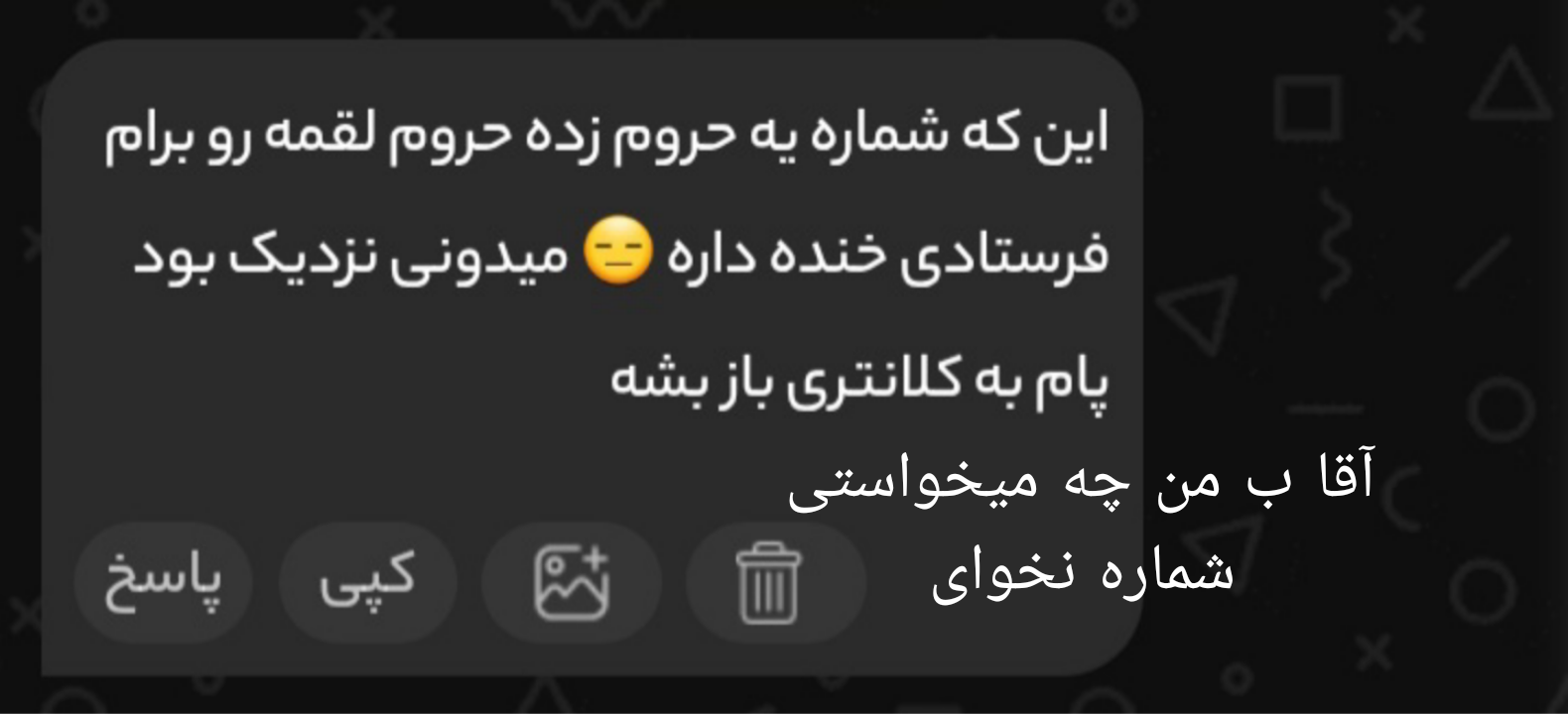 جواب ناشناس ² 𝒢𝑜𝓁𝒾 1404/10/7 16:01 اینم جواب های شما 🤭 ## ناشناس # 6 نظر 4 پسند در حال بارگذاری نظرات... ارسال نظر آزاد است اما میتوانید برای استفاده از امکانات و کسب تجربه وارد شوید. پاسخ به لطفا دوباره تلاش کنید. بارگذاری مجدد نظر ثبت شد.